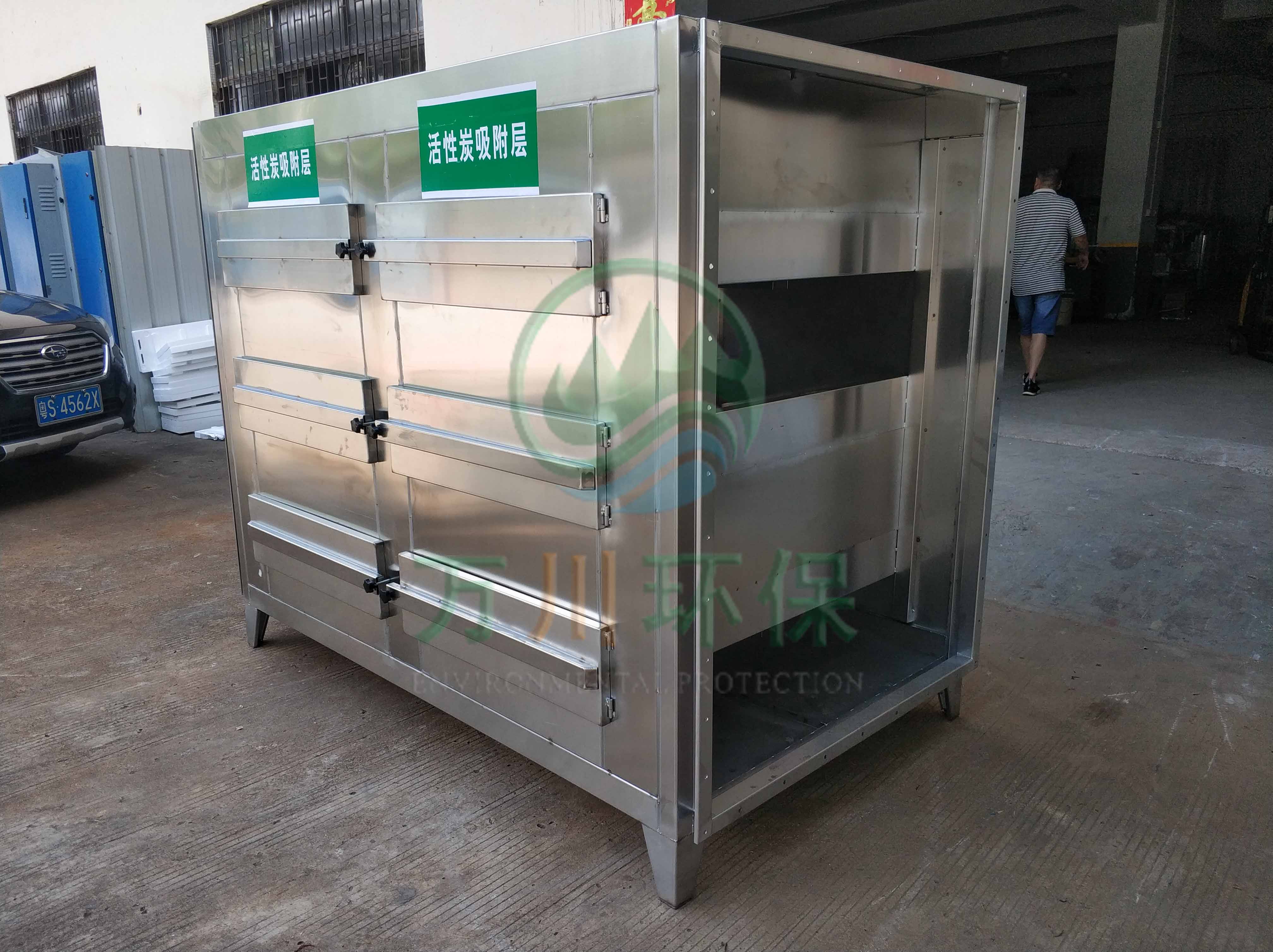 根據廢氣類型和場地需求我們采用噴淋塔+兩級活性炭對其進行處理。反應釜廢氣處理配套一臺17170風量pp噴淋塔+兩臺17170風量的不銹鋼材質活性炭吸附塔+干式過濾與大功率防爆離心風機+自動化電控柜系統。