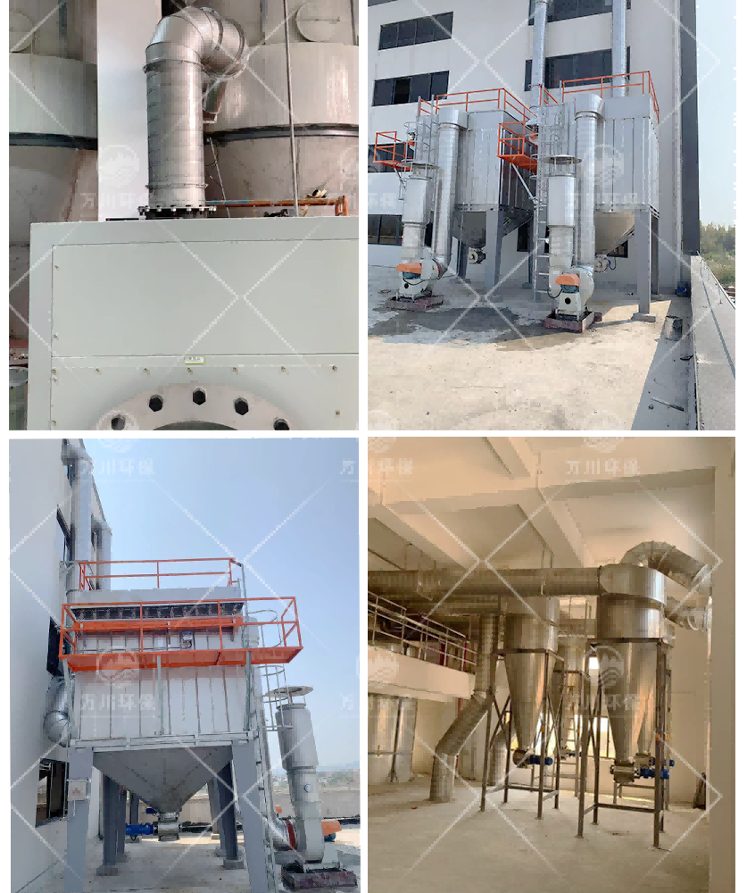 本次根據設計的方案共采用了4套旋風除塵器+脈沖除塵器組合工藝系統