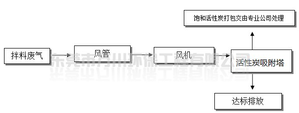 拌料固化產(chǎn)生的屬于揮發(fā)性的有機廢氣,通過車間內合理布管,由引風機抽至車間外處理后排放,處理能力為18000m3/h,系統(tǒng)設于車間樓頂。