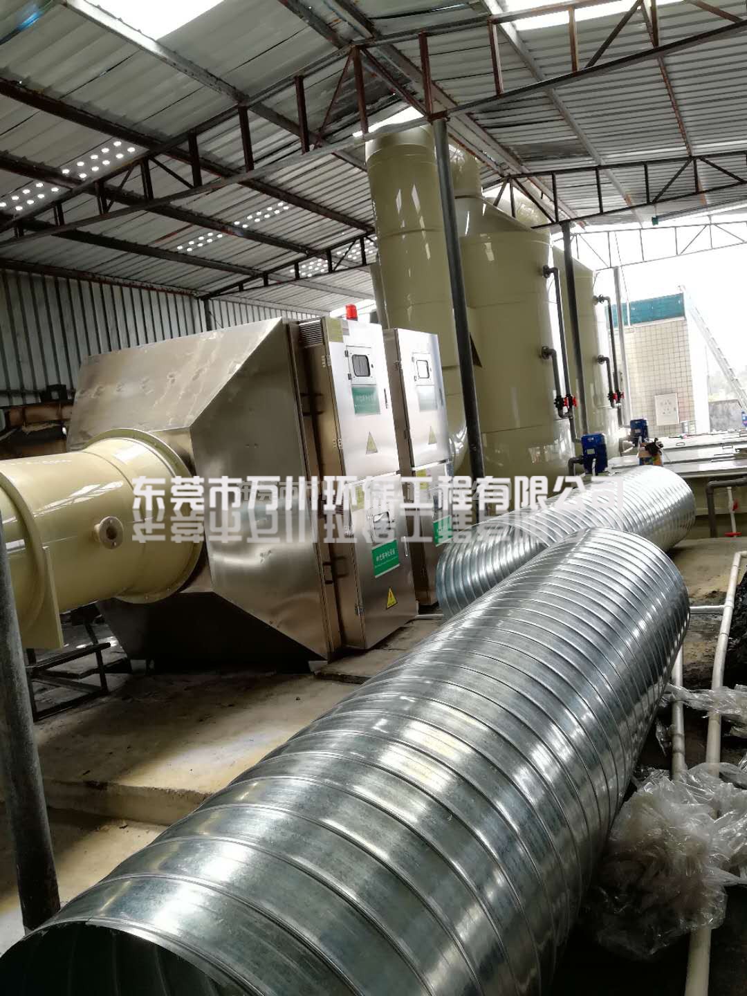 須使用噴淋塔將粉塵處理大部分粉塵,在進(jìn)入等離子凈化器之前還會(huì)有一層過濾棉,過濾剩余的粉塵和水分。之后廢氣就會(huì)進(jìn)入到等離子凈化器和UV光解凈化器內(nèi)進(jìn)行凈化處理,處理達(dá)標(biāo)排放。